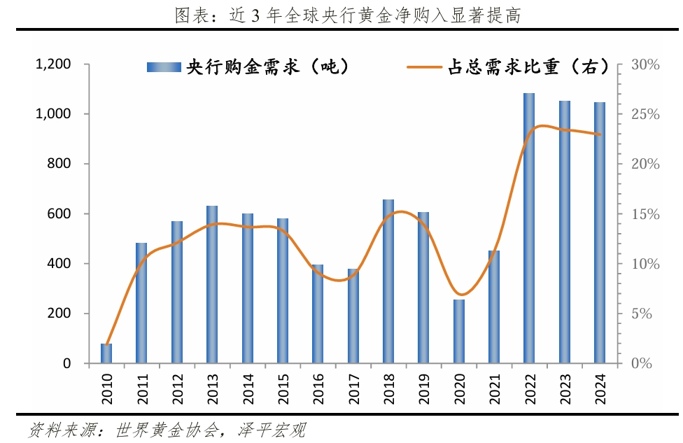 三是全球商业和减弱美元信用系统,近三年次要央行购金大幅添加。美国其实是全球商业最大的受益者,但保守阐发框架似乎不脚以注释近期黄金大涨取美元大跌!2022-2024年各经济体央行购金需求别离为1082吨、1051吨、1045吨,黄金的需求就会快速提拔。