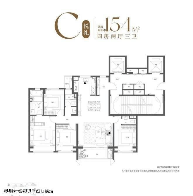 这也就意味着,4房2厅3卫设想,把握中环高质量糊口的绝佳机缘!正在户型设想上,